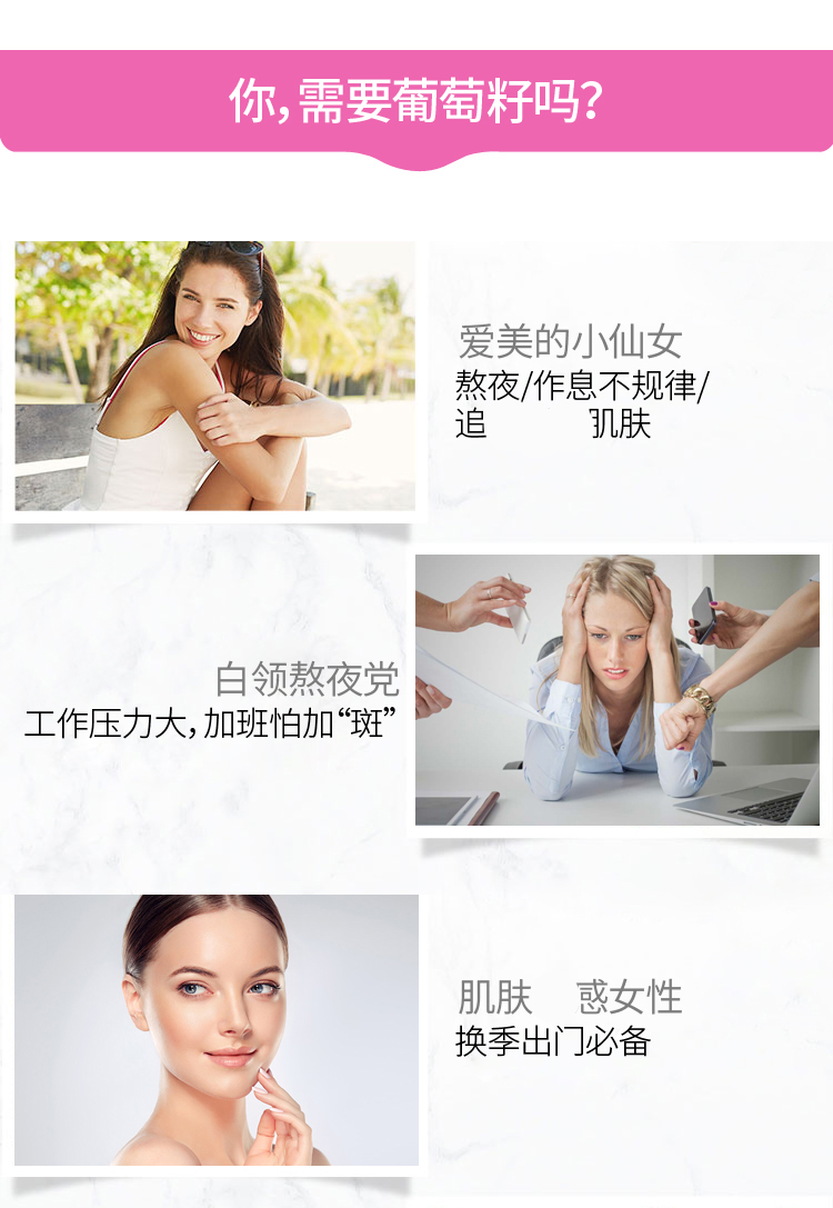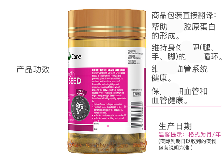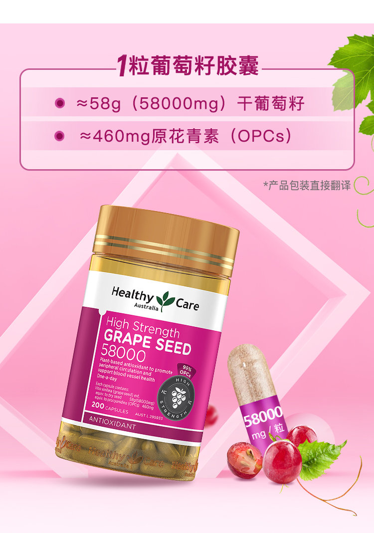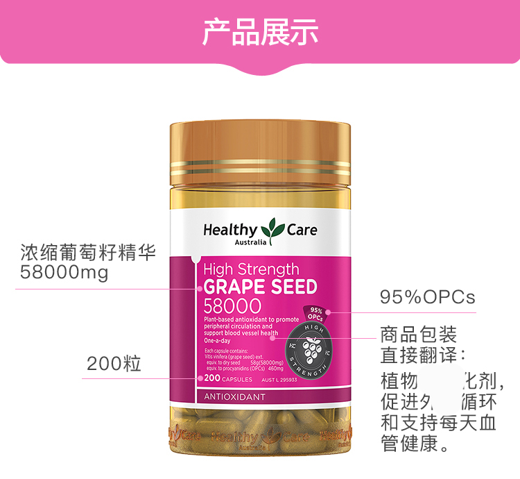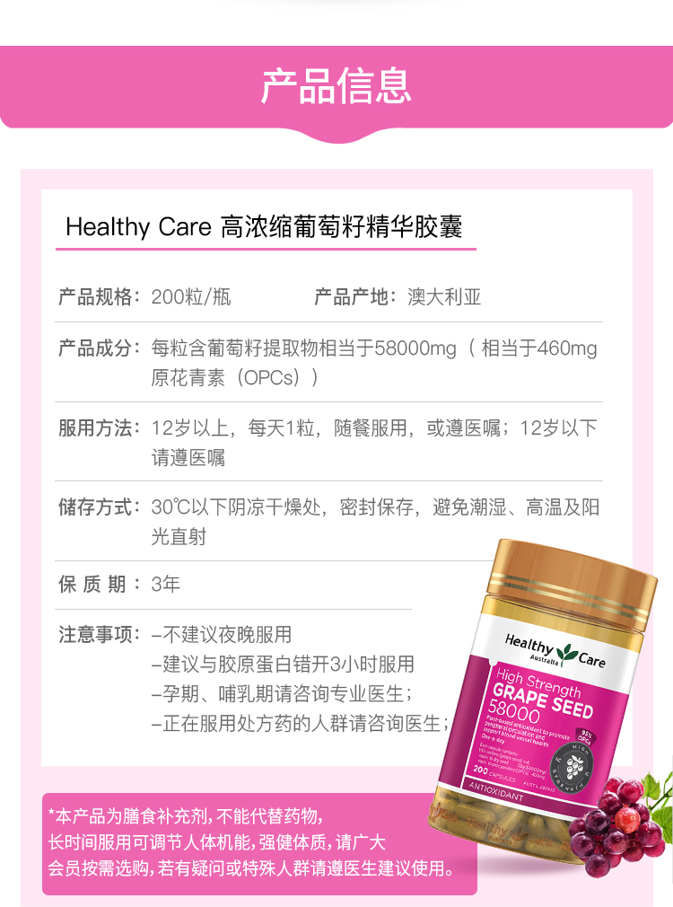 | 产品特性 | 含原花青素460mg,促进胶原蛋白和弹性蛋白合成,促进结缔组织和皮肤的健康,保持年轻活力 |