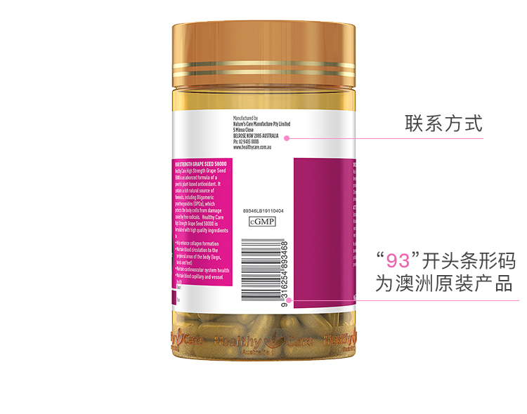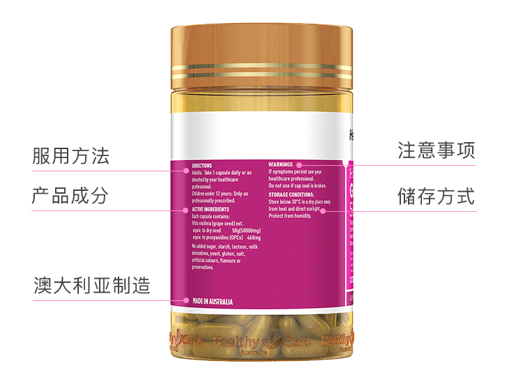 Unichi葡萄籽粉精华胶囊澳洲维生素花青素60粒
