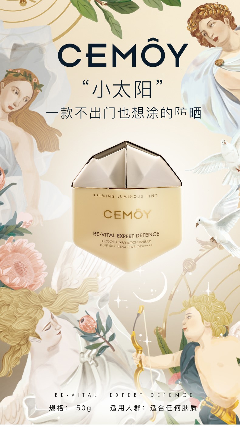 CEMOY小太阳防晒霜SPF50+ 50g抗光老化轻薄不闷痘