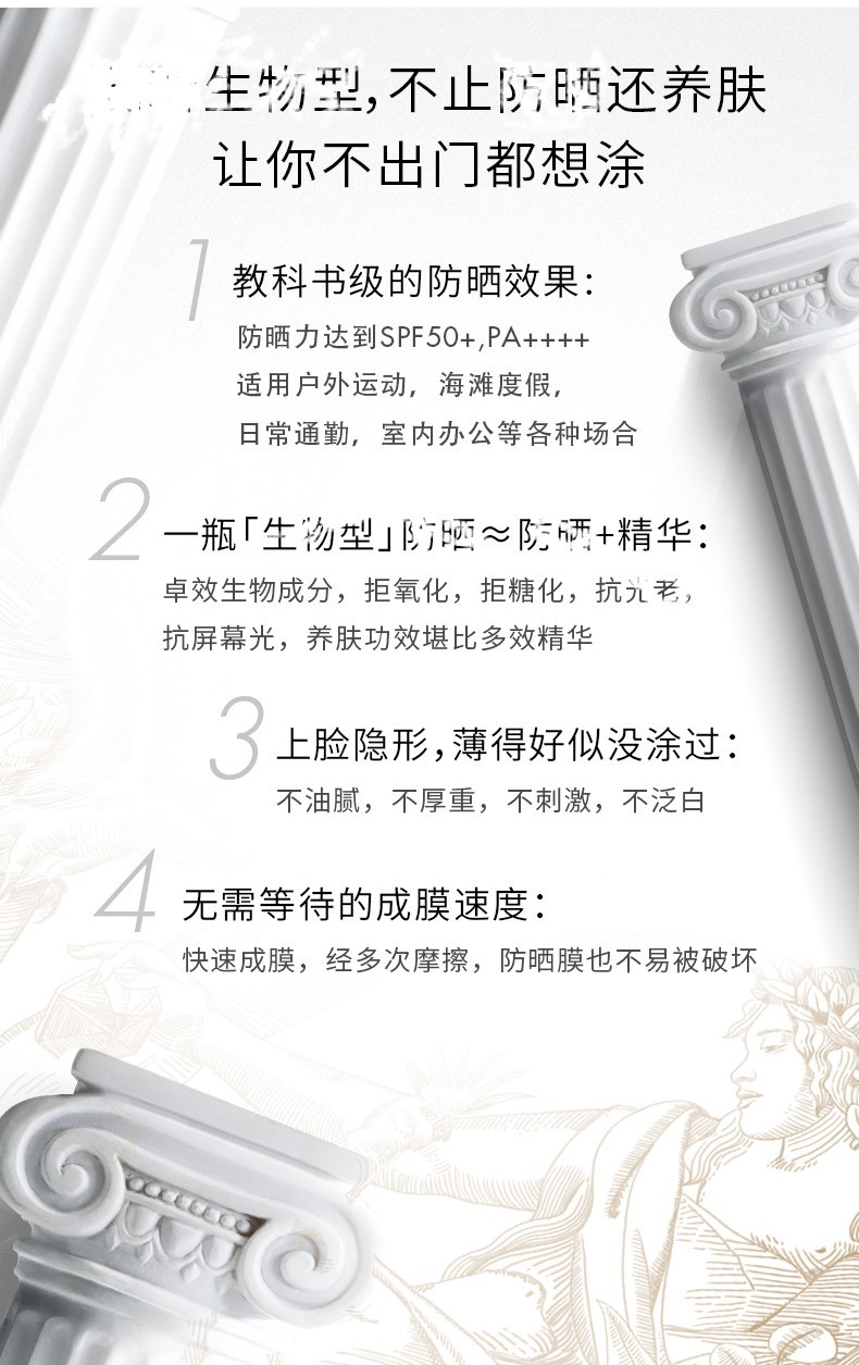 产品特性养肤防晒霜,防紫外线,隔离,抗光老化,轻薄不闷痘