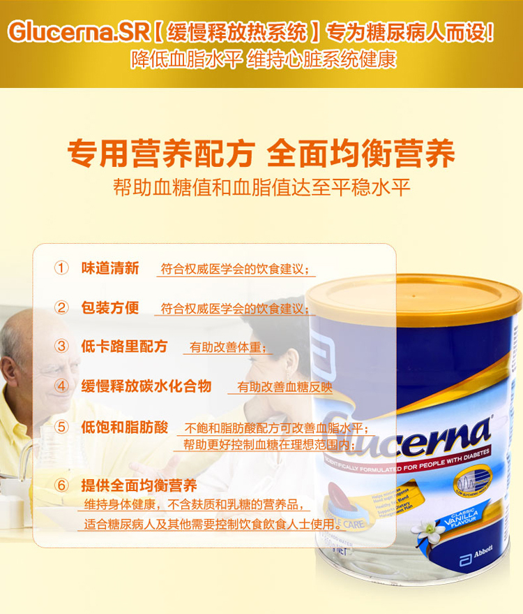 Abbott Glucerna雅培无糖营养奶粉 糖尿病奶粉 香草味 850g